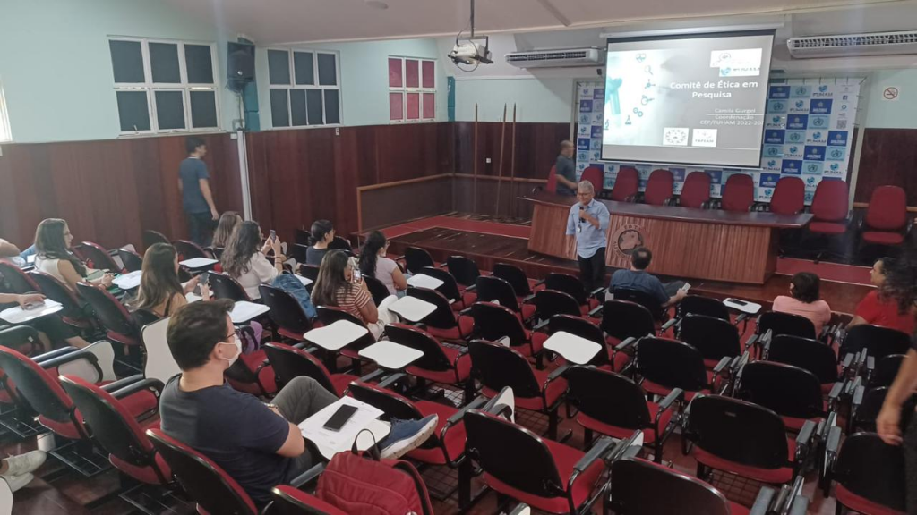 A programação de abertura das atividades da turma 2023/2024 do Paic/Fuham teve como tema principal aspectos éticos na pesquisa. A coordenadora do Comitê de Ética em Pesquisa (CEP) da Fuham, Camila Gurgel apresentou questões como o contexto histórico dos aspectos éticos envolvidos em pesquisas científicas, surgimento do sistema CEP no Brasil e sua importância para o desenvolvimento de pesquisas eticamente justificáveis e que prezem pelo respeito aos participantes de pesquisas.