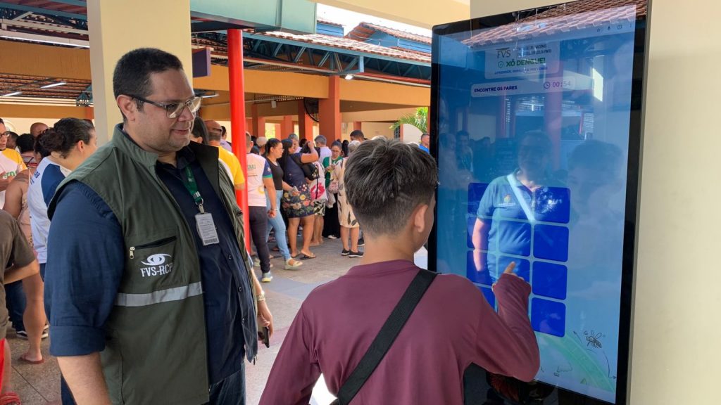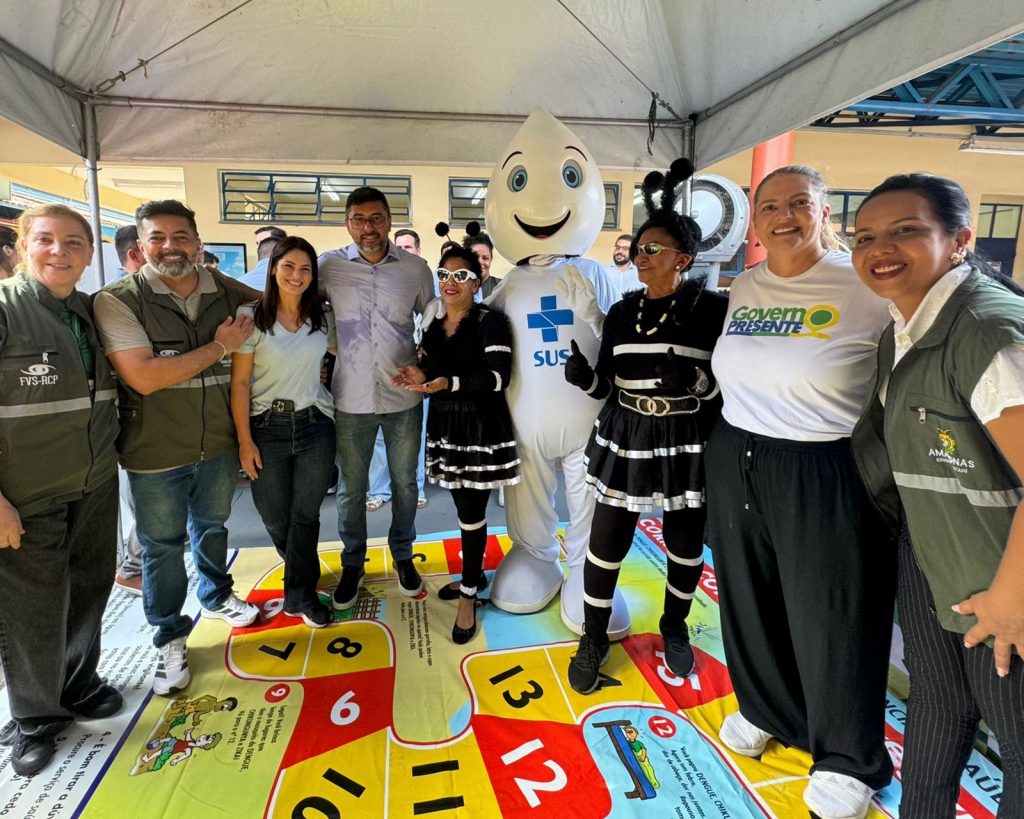 A FVS-RCP realizou o Dia D de Mobilização contra a Dengue, reforçando as ações de prevenção às arboviroses diante do aumento do risco de transmissão neste período sazonal. A programação incluiu exposição do Ciclo do Mosquito, que mostra de forma clara e visual as fases de vida do Aedes aegypti e como pequenos descuidos viram criadouros; Tapete da Prevenção, um percurso interativo com orientações práticas e acessíveis para manter os ambientes livres do vetor; e o Quiz da Dengue, dinâmica divertida que testa conhecimentos e incentiva a população, de todas as idades, a reforçar hábitos de prevenção na rotina diária.