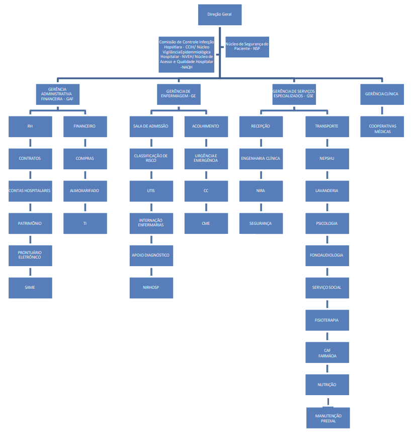 Onde: Recepção de Urgência e Emergência, Consultórios, Unidades de Internação e Sala de Reanimação.